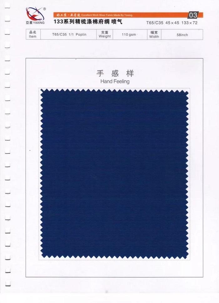 133系列精梳滌棉府綢 T/C 65/35 45x45 133x72, 58", 克重:110克/平方米